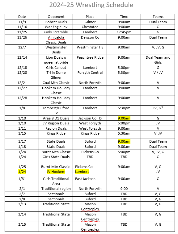 2024-2025 High School Schedule